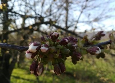Le même jour (31/03) dans notre jardin, nous observons les arbres fruitiers en bourgeons et en fleurs :
