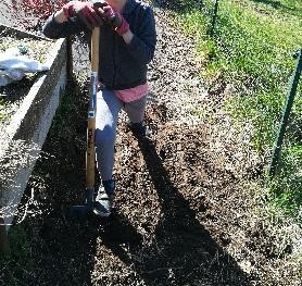 Nous avons la chance d’avoir des papis très bons jardiniers !!! Mais cette année avec le confinement, on a voulu essayer de faire notre jardin. Nous avons donc trouvé un bout de terrain à désherber, bêcher (01/04) :