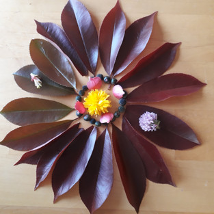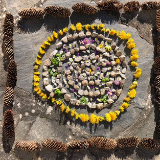 Il collecte des objets de la nature : pierres, bois, coquillages, … et les assemble dans des formes géométriques simples, soit en intérieur,